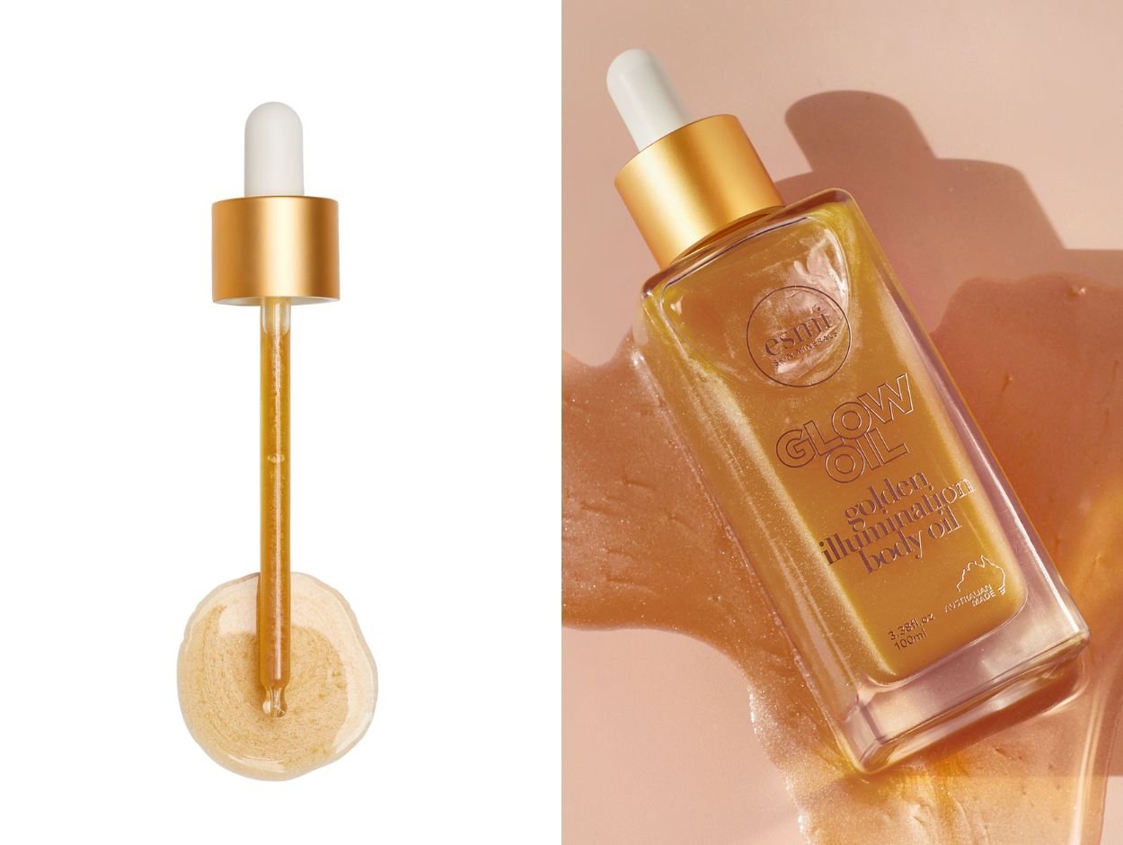 Expertly designed to be fast-absorbing, non-greasy and lightweight, embrace the luxury of esmi's Golden Glow Illuminating Body Oil. Here for a limited time only!